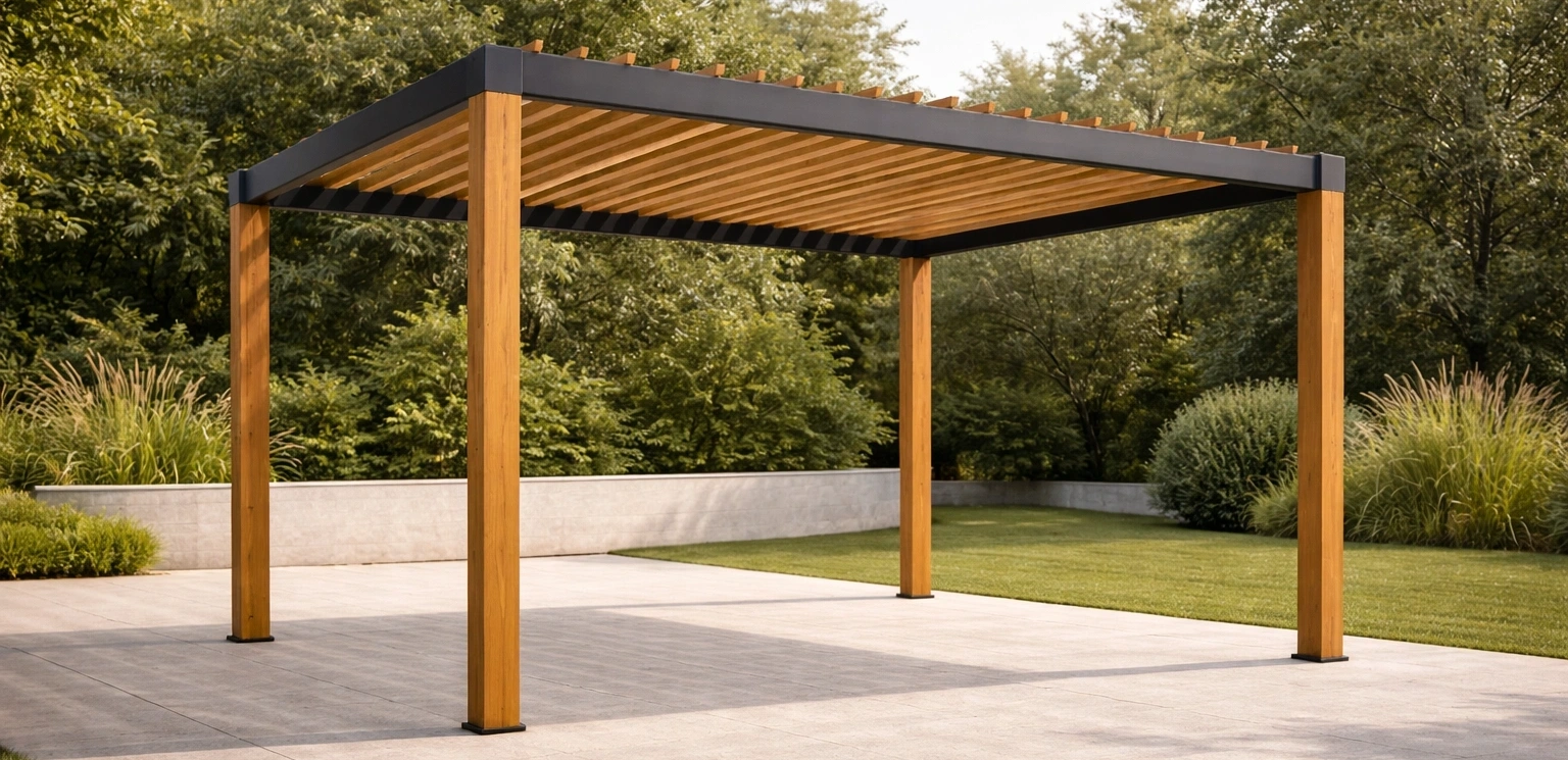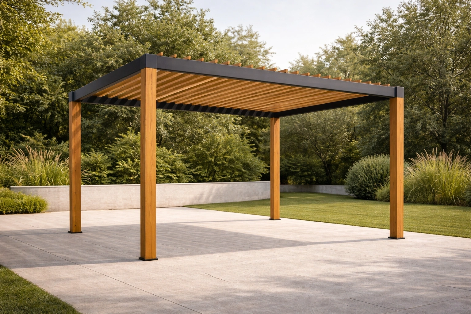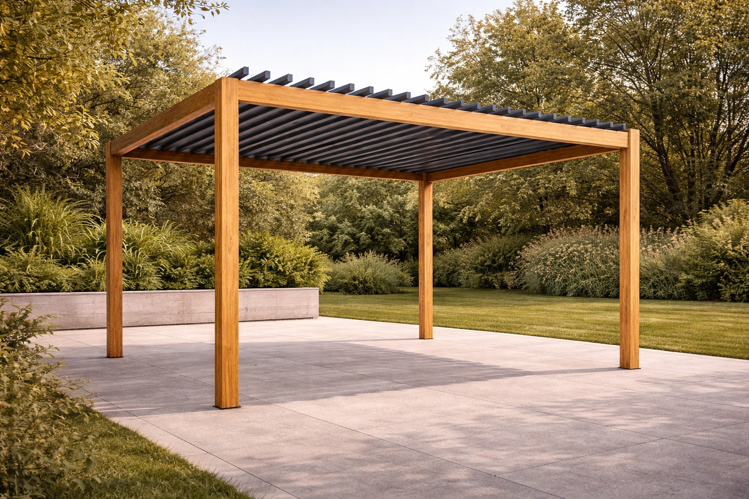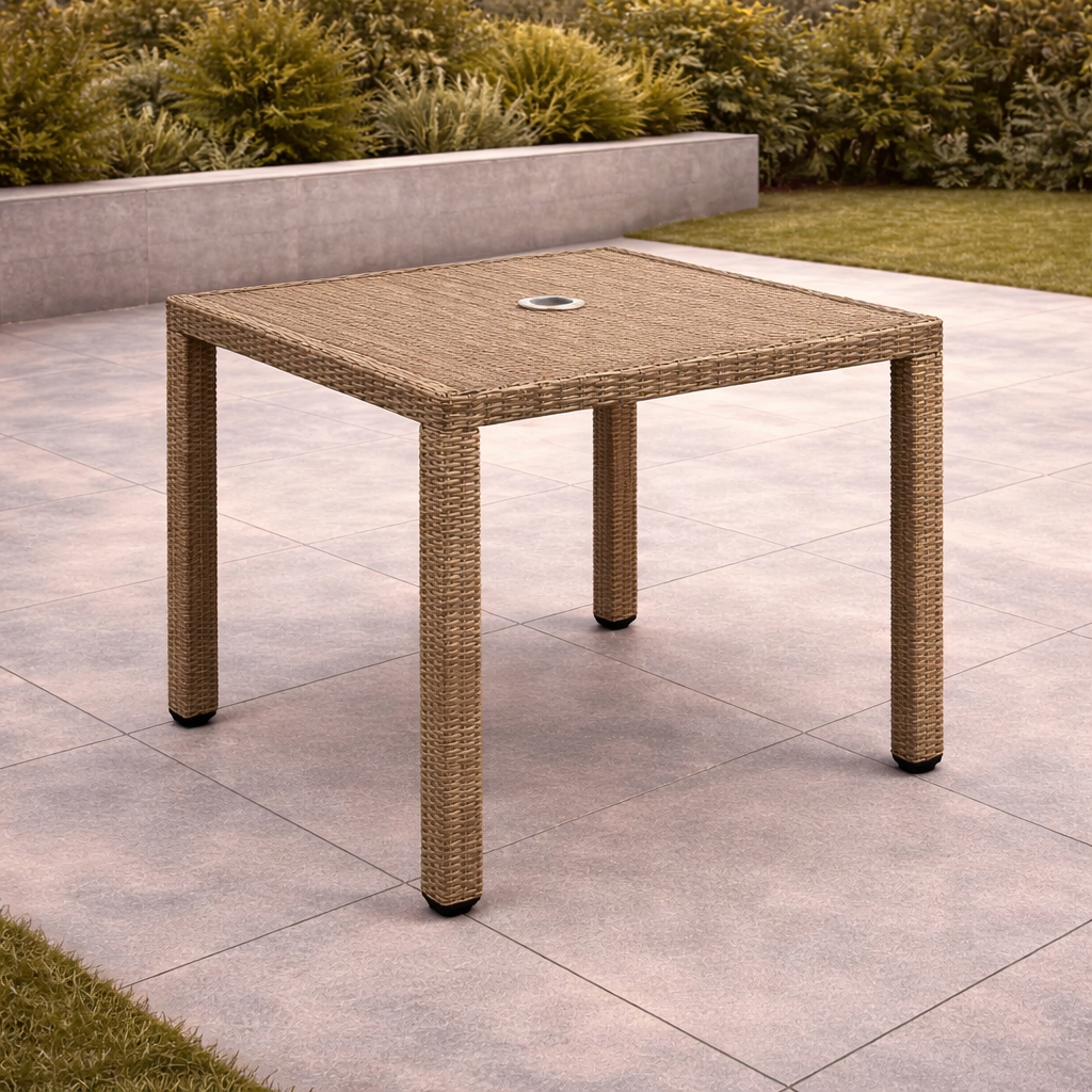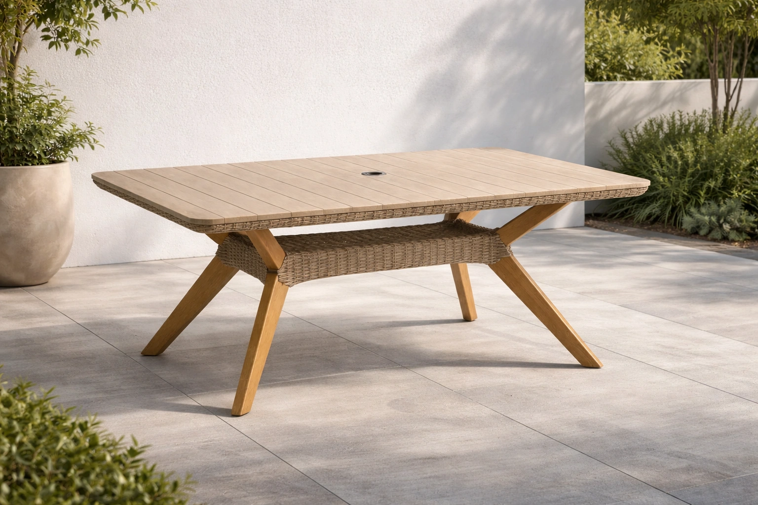 Ensemble de bar en bois et rotin avec table haute et chaises