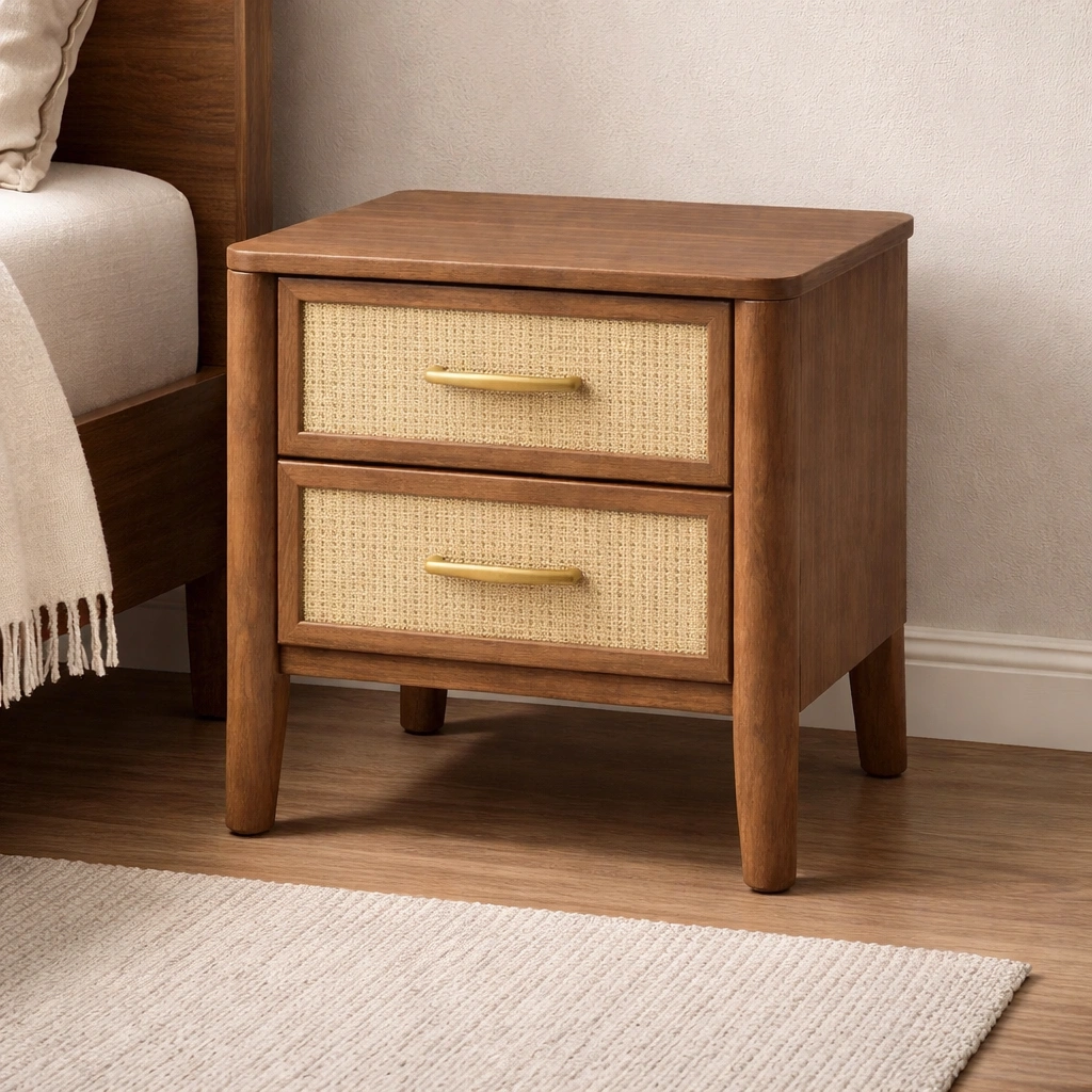 Table de chevet en bois avec 2 tiroirs couleur chêne