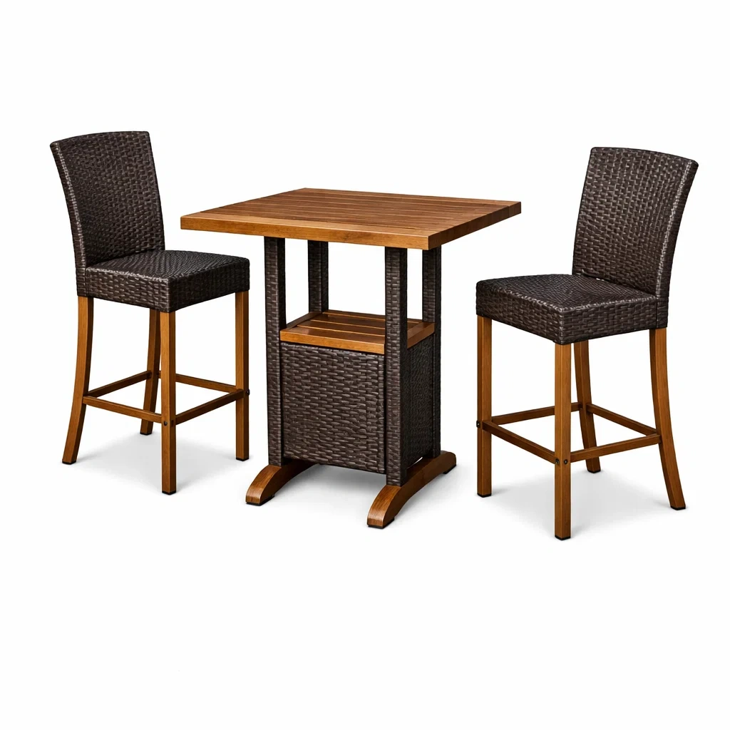 Ensemble de bar en bois et rotin avec table haute et chaises