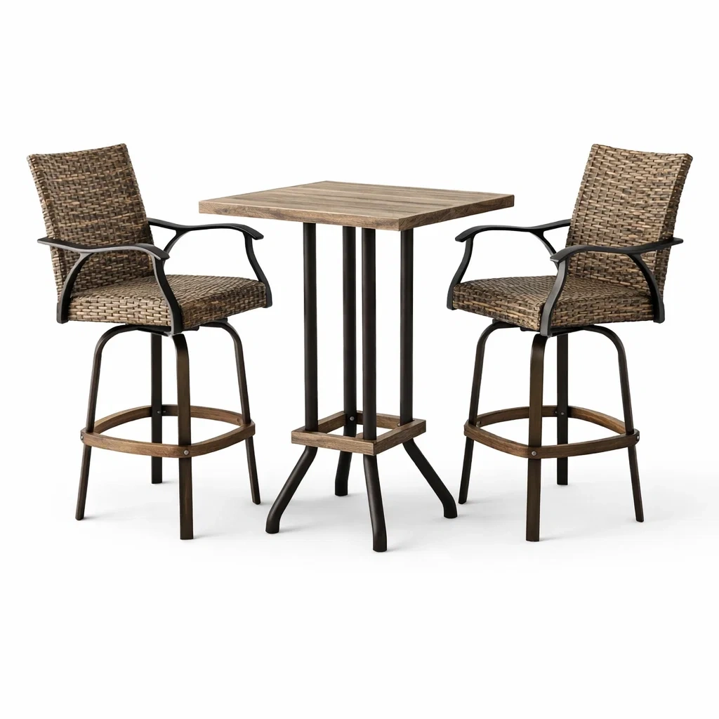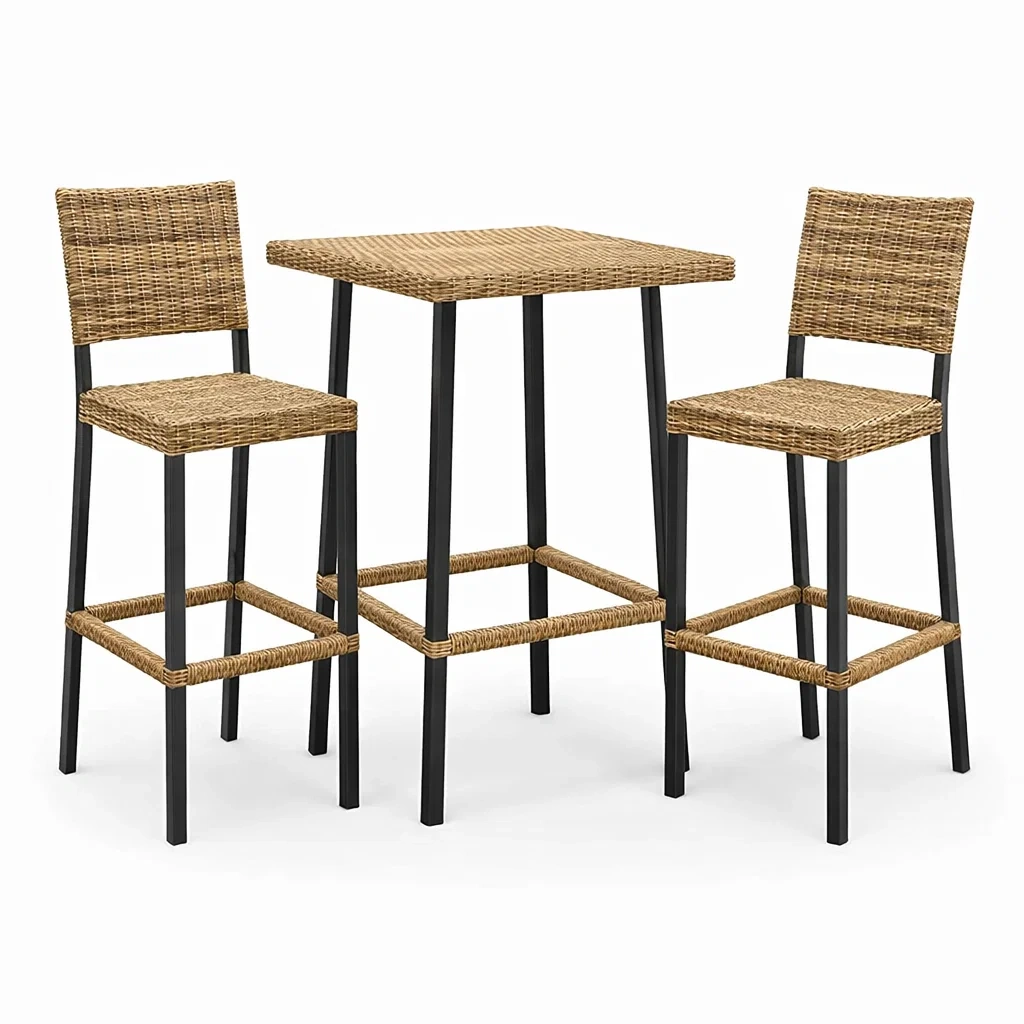 Ensemble de bar extérieur en rotin synthétique et métal 3 pièces
