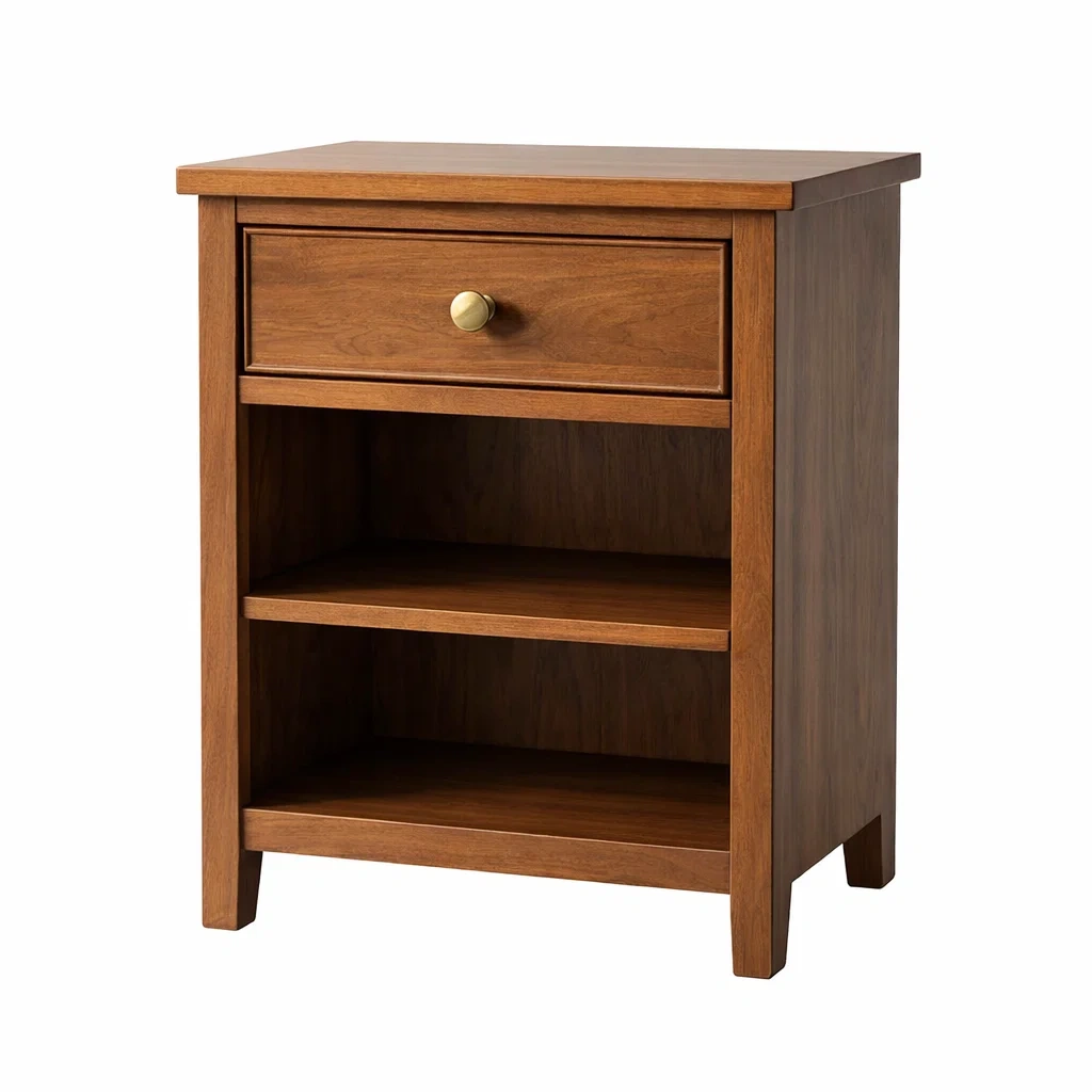 Table de chevet en bois avec tiroir et étagères