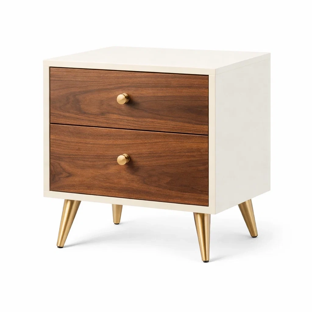 Table de chevet en bois avec pieds en métal doré