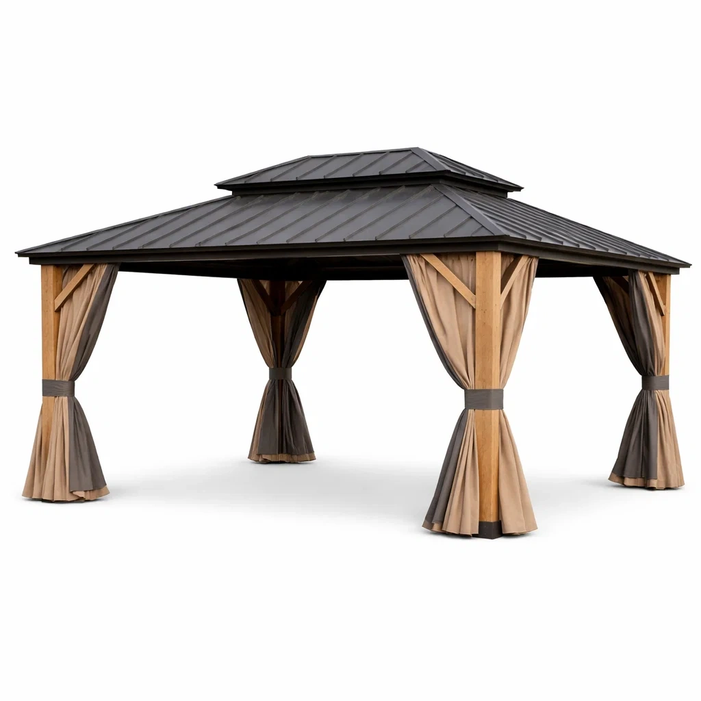 Tonnelle de jardin en bois avec toit en métal