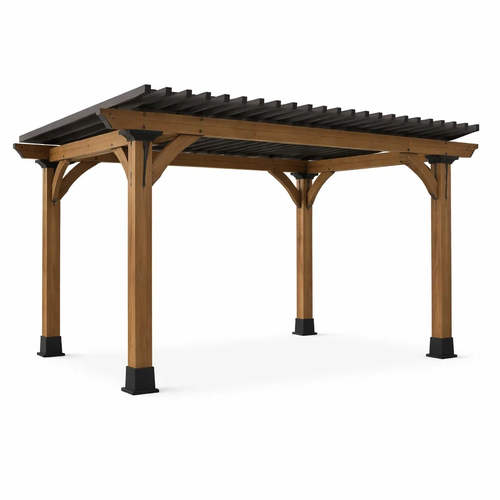 La tonnelle est fabriquée avec une structure en bois de pin traité et un toit en aluminium. Ses dimensions sont de 350 cm de longueur, 300 cm de largeur et 250 cm de hauteur. Le poids net est de 80 kg. La capacité de charge n'est pas spécifiée pour ce modèle.